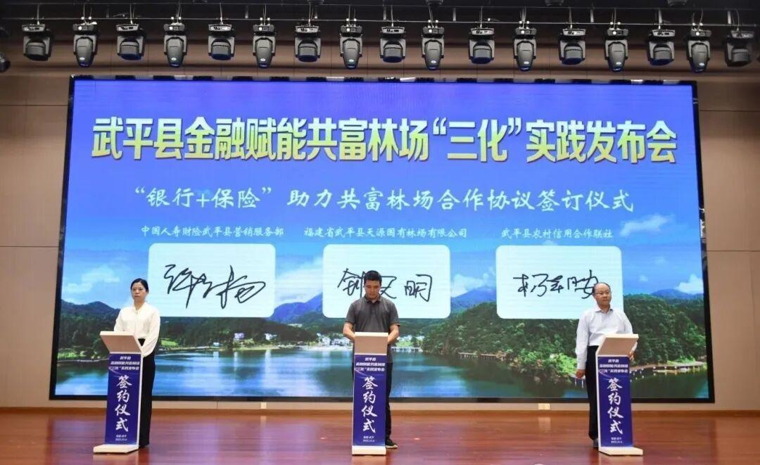 编者按: 武平林改二十余载,从破题“林业五难”、作答“林改四问”,到经验上升为国家决策、打造全国林改样板,其实践生动诠释了正确政绩观的核心要义,为基层干部树立和践行正确政绩观提供了鲜活范本。武平县融媒体中心推出“林改里的政绩观”系列报道,探寻林改中的政绩密码,让武平经验为全国深化集体林权制度改革持续探路赋能,今日推出《武平:金融活水润青山 久久为功促共富》。 2025年11月6日,全国首例共富林场立体式产业链保险服务项目在福建武平签约落地,成为武平以金融赋能林改、践行正确政绩观的生动注脚。该项目为武平县天源国有林场搭建起全方位风险防护网,涵盖2001亩林票地近248万元风险保障、6.7万亩林业碳汇100万元风险兜底及伐木工人团体意外险,为林业发展筑牢安全防线。