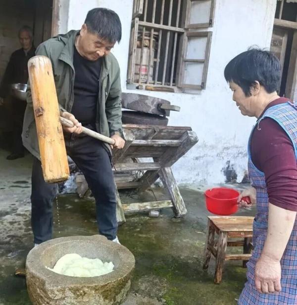 用这种灰水做出来的粄,带有独特的草木香味,吃下去不会“烧心”,反而助消化。除了天然的碱水,制作灰水粄还需选用当地特有的“禾米”或优质大米,有时配上糯米增加黏性,让口感更加软糯弹牙。 千锤百炼,方得柔韧 灰水粄的制作过程繁琐且考验体力。
