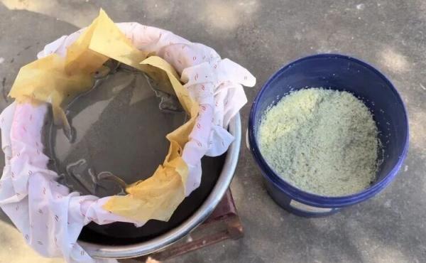 浸泡与磨浆:将洗净的大米倒入备好的灰水中浸泡,泡好的米粒呈淡黄色,随后将其磨成细腻的米浆。传统的石磨慢碾,是武平灰水粄口感软糯又弹牙的关键,也是客家老手艺里藏不住的细致用心。