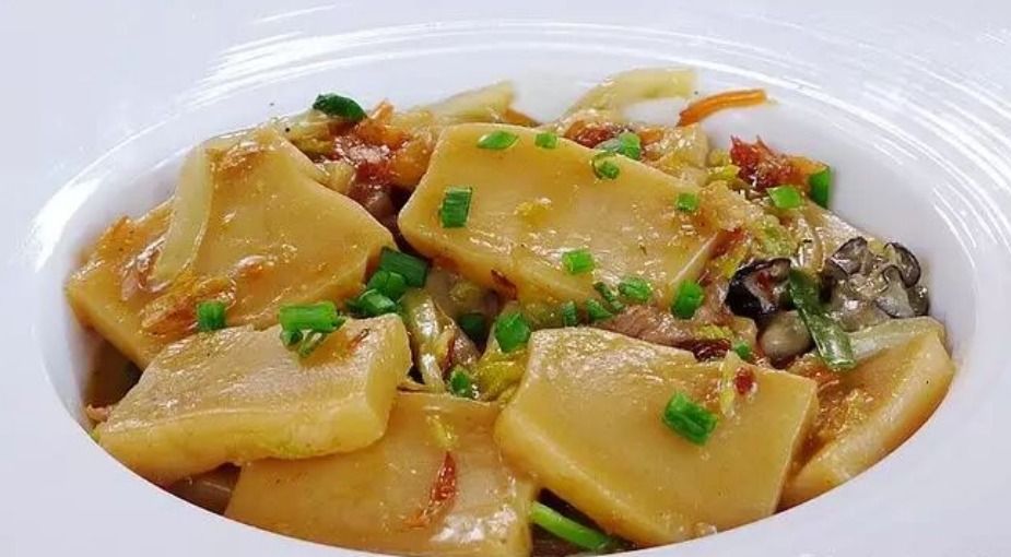 灰水粄的吃法五花八门,足以满足不同食客的味蕾。 蒸:直接将灰水粄蒸软,蘸花生粉、芝麻糖吃,还原最纯粹的米香与草木清香,清甜不腻。 煮:将灰水粄切块放入鸡汤、骨汤中煮软,吸满汤汁的鲜味儿,暖乎乎的一碗,秋冬吃超舒服。 煎:将灰水粄切片,热锅放少许油,煎至两面金黄焦脆,外酥里糯,蘸白糖或酱油,甜咸皆宜。 炒:将灰水粄切条,搭配香菇丝、瘦肉丝、鱿鱼丝和蒜苗猛火爆炒,边缘微焦,内里软糯,是下酒下饭的佳品。