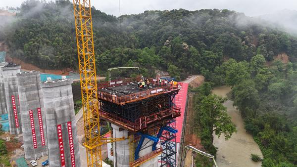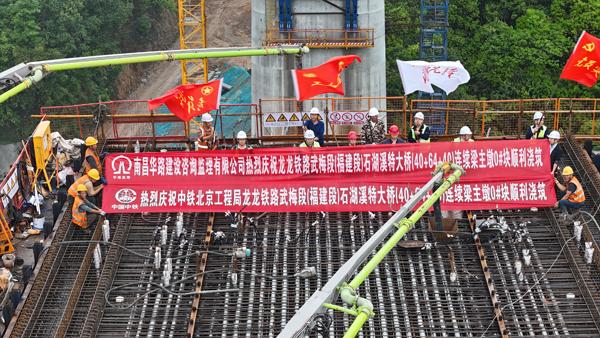 4月6日,龙龙高铁武平至梅州段(福建段)项目建设现场传来捷报,随着最后一方混凝土精准入模,项目关键控制性工程——石湖溪特大桥(40+64+40)米连续梁8号主墩0号块顺利完成浇筑,标志着该大桥正式进入上部结构连续梁悬臂施工关键阶段,为后续主体工程快速推进及全线建设按下“加速键”。