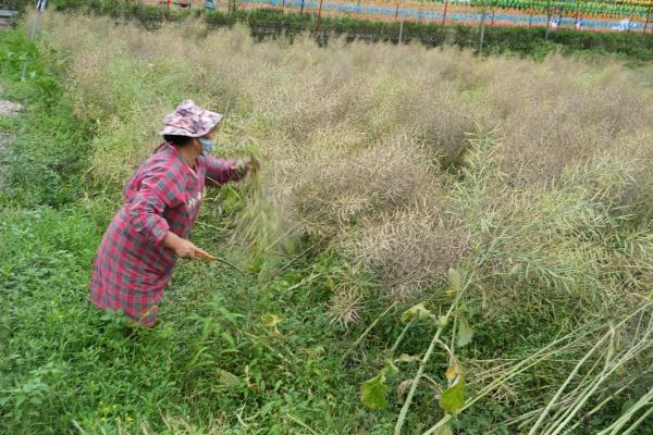 “今年一共种了200多亩油菜,去年11月份种植,现在开始成熟收割,亩产大概200来斤,4月20号之前就能收完。”农场负责人蓝伟明介绍。