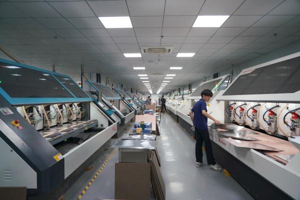 为回应市场需求,企业主动发力,加快推进二期项目建设。公司总经理徐晓波介绍,“二期项目主要布局PCB锣板工艺,目前工程装修已经接近尾声,中央冰水集成和空压系统已经安装调试完毕,计划新增42台六轴直线数控锣机,预计6月中旬建成投入使用。”