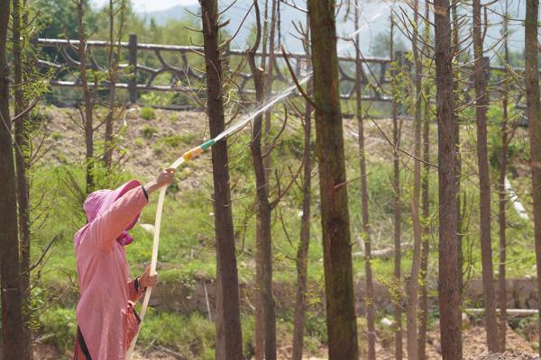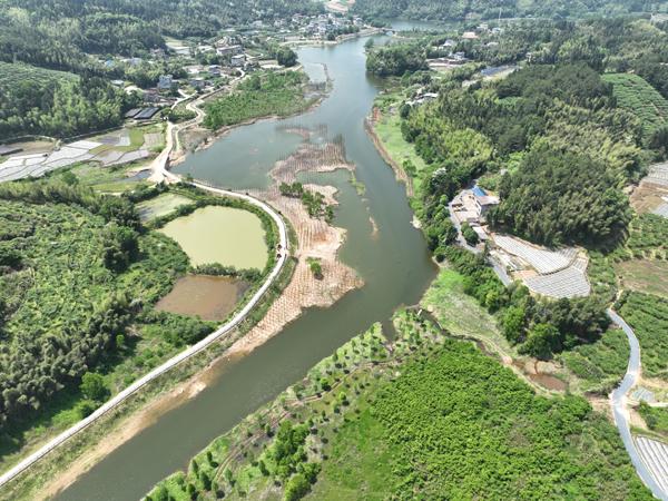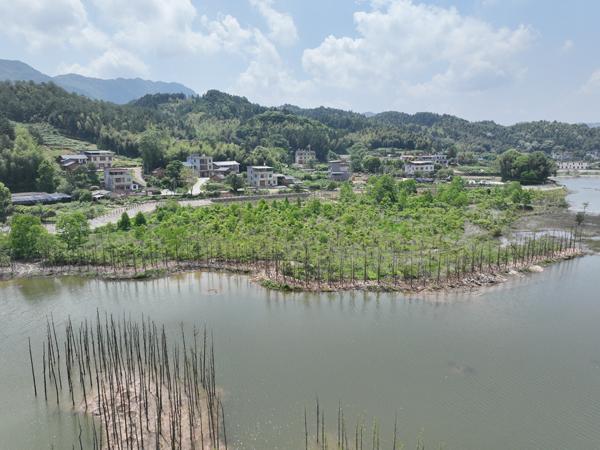 4月20日,走进武平县东留水库上游水系生态治理项目(二期)现场,只见工人们正忙着为新栽种的水杉浇水养护,枝头已抽出嫩绿新芽,生机盎然。