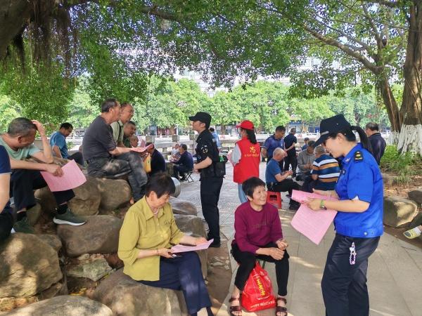 行动中,劝导组对公园重点区域实施常态化巡查与文明引导。针对遛狗不牵绳、乱扔垃圾、踩踏草坪、噪音扰民、违规停车等不文明行为,工作人员采取柔性劝导和现场讲解相结合的方式,耐心向市民普及文明游园准则及城市管理相关规定,引导大家主动改掉陋习。同时,劝导组还向过往市民发放文明宣传资料,倡导大家自觉爱护公共设施、维护环境卫生,主动践行文明游园理念。
