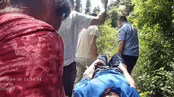 医护人员到场后立即对其进行现场救治,丘大叔身体状况逐渐恢复。随后,民警联合医护人员及家属,用担架将丘大叔安全抬下山,并送往医院进一步治疗。因送医及时,丘大叔已无大碍。