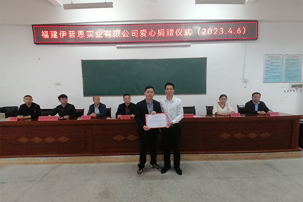 2025年3月,伊普思实业向武平县慈善总会捐赠50万元善款,其中30万元定向投入“关爱医护善济病困”项目,为身陷困境的群众送去希望;剩余20万元全部用于助学帮扶,为寒门学子点亮求学路上的“灯塔”。