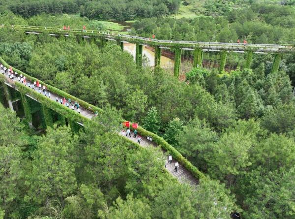 此次活动路线全长约5公里,途经湿地花香、渔歌唱晚、竹林禅静、水杉争雄、芦苇飞花、松之谷、松海云梯等景点。各代表队队旗飘扬,职工们精神抖擞、步伐矫健,在饱览千鹭湖生态风光的同时,尽情享受运动带来的舒展与愉悦。