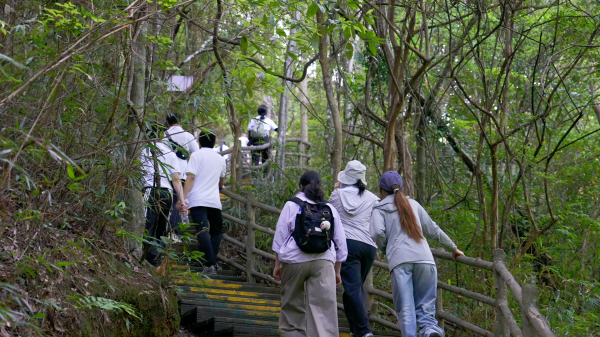 此次登高路线共3.3公里,沿途山林苍翠、飞瀑潺潺、景致怡人。青年们统一身着活动服装,结伴登山。大家沿着环形木栈道前行,途中,青年们互助同行、轻松交流,在亲近自然、舒缓身心的同时凝聚团队合力,自觉践行无痕登山、文明出游理念,一同守护山野生态美景。